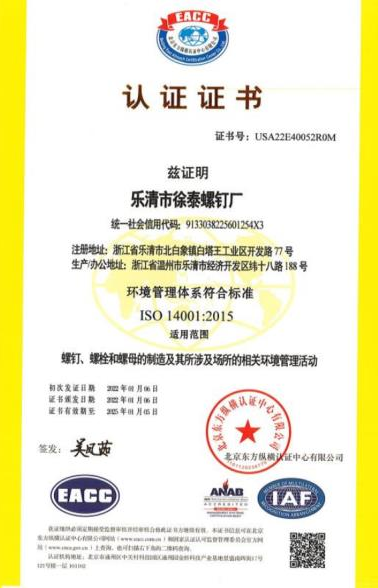 乐清市徐泰螺钉厂成立于1996年,坐落在浙江省